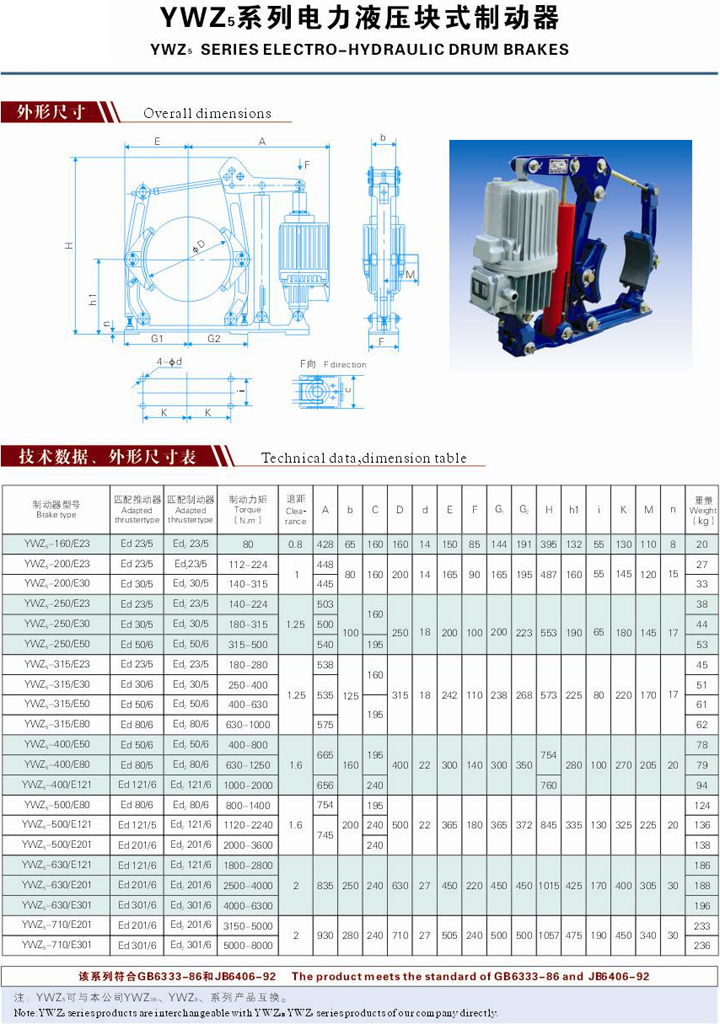 YWZ5電力液壓鼓式制動器